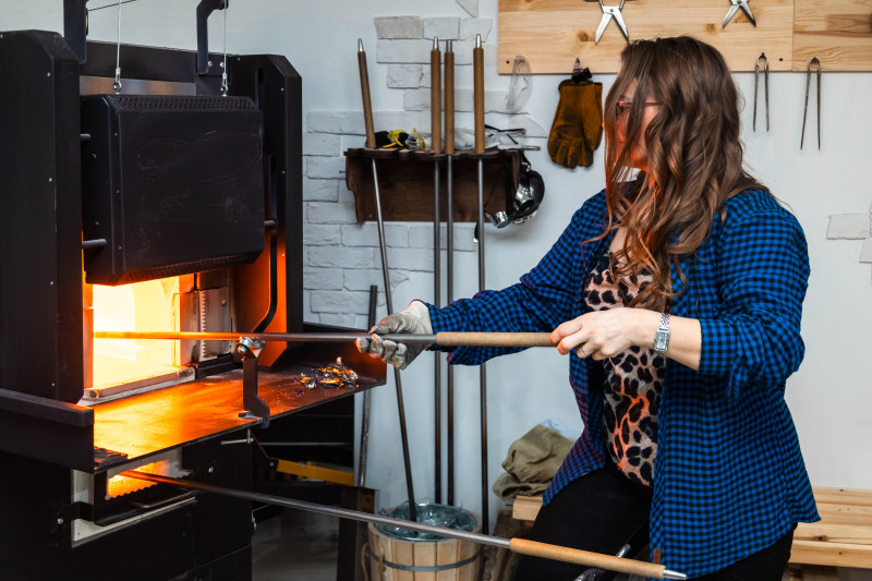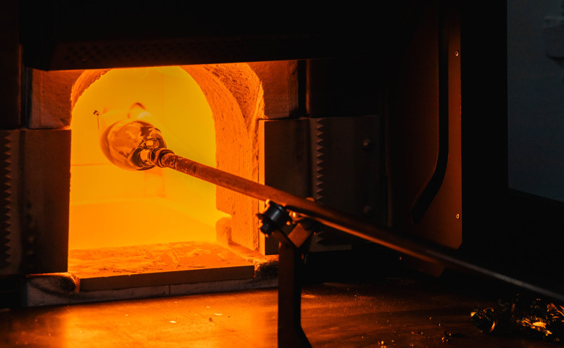 Небольшой кусочек стекла отправляется в одну из раскаленных печей Надежды. Здесь начинается его неизбежное преображение. Стеклышко покрывается румянцем и постепенно превращается в «пластилин». Этот момент очень важен, говорит Надежда, нужно быть предельно внимательной.