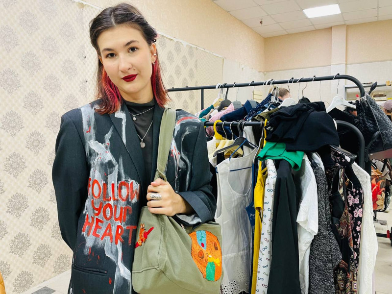 – Сюда я пришла, потому что я ищу материал для своего творчества, для воплощения своих идей. На мне сегодня пиджак. Это кастом одной очень интересной художницы, я совершенно случайно на нее наткнулась и перевела принт на этот пиджак. Здесь определенная абстракция, различные мазки, и есть две надписи – «слушай свое сердце» спереди и на спине у меня написано «живи для себя». На свопе я ищу либо однотонные вещи, либо «спокойные», чтобы их стилизовать. Такие мероприятия привлекают людей к разумному потреблению. Многие ненужные вещи просто выбрасывают на свалку, но если вещи в хорошем состоянии почему бы их не пустить на что-то более интересное?! Для дизайнеров или художников – это кладезь полотна для переработки, чтобы дать вещи новое дыхание, – говорит Софья Реутова.