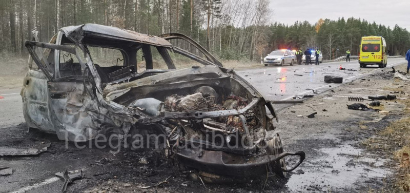 После столкновения одна из машин вспыхнула и сгорела полностью. Сейчас на месте аварии продолжают работать сотрудники Госавтоинспекции. Им предстоит выяснить причины произошедшей трагедии.