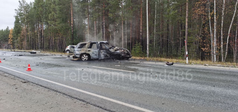 Одна из машин вспыхнула: в жутком лобовом столкновении в Сургуте погибли двое водителей. ФОТО