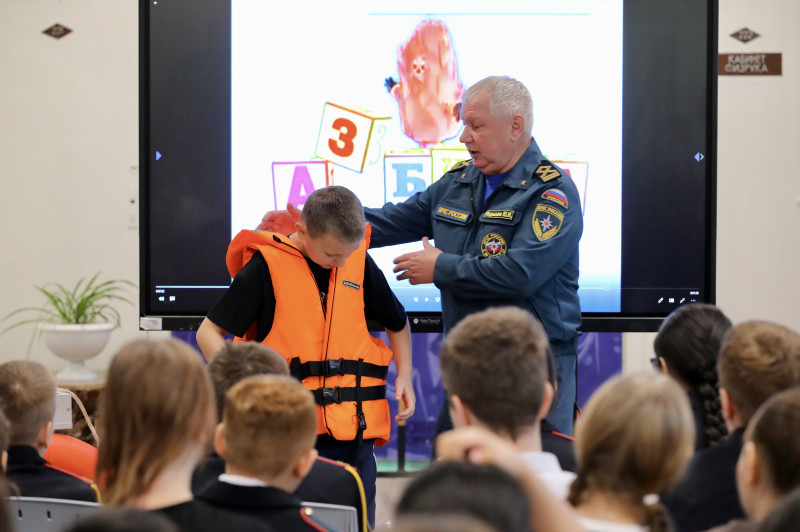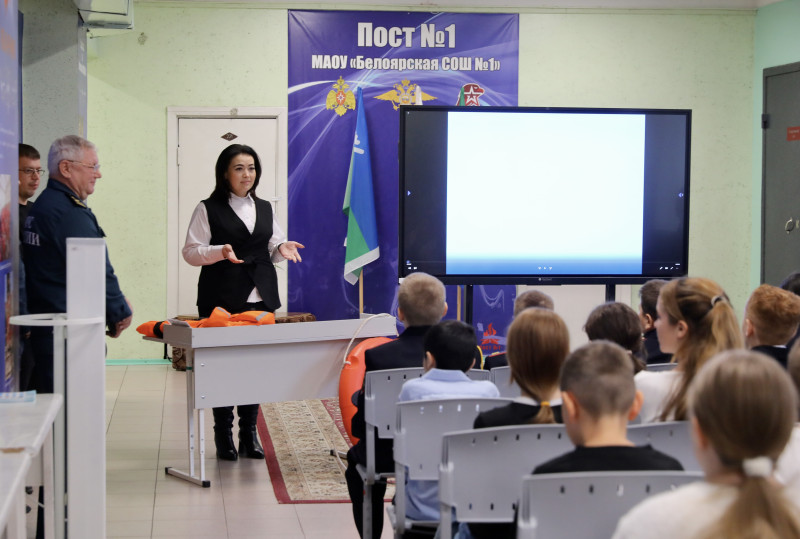 Один из практических уроков о безопасности на льду прошел в школе Белого Яра. Ребятам объяснили, как правильно использовать спасательный жилет и что делать, если человек провалился под лед.