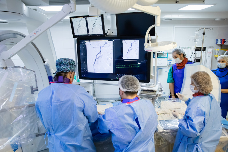 При плановых операцияхспециалисты коллегиально выбирают метод лечения, оценивая все риски. В этом случае действовать пришлось молниеносно. Пациенту экстренно провели малоинвазивное вмешательство. Через небольшой прокол хирурги, провели тончайший катетер и специальным препаратом растворили 85% тромба. Чуть позже провели вторую операцию, чтобы полностью восстановить артерии.