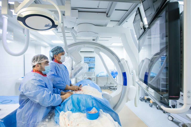 Рентгенаппарат в составе ангиографа мощный, но максимально безопасный для пациента, успокаивает врач.