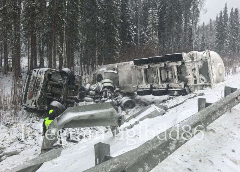 В полдень 10 ноября на дороге Нягань – Унъюган с дороги вылетел большегруз. По предварительной информации, к этому привело то, что 50-летний водитель Sitrak не выбрал безопасную скорость движения, вследствие чего многотонную машину сначала отбросило на дорожное ограждение, после чего она вылетела в кювет и опрокинулась.
