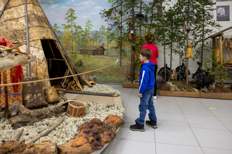 Полгода тишины теперь позади, сейчас музей вновь открыт. Школьников спешат окунуть в главную специфику – знакомство с культурой коренного населения. В роли гида и учителя методист музея Валентина