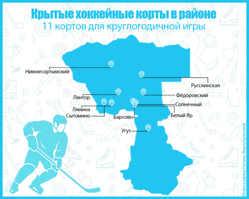 Всего же на территории Сургутского района насчитывается 11 крытых катков. В следующем году ожидается открытие еще одного – в Угуте. Расположение других спортивных объектов можете увидеть на нашей карте ниже.