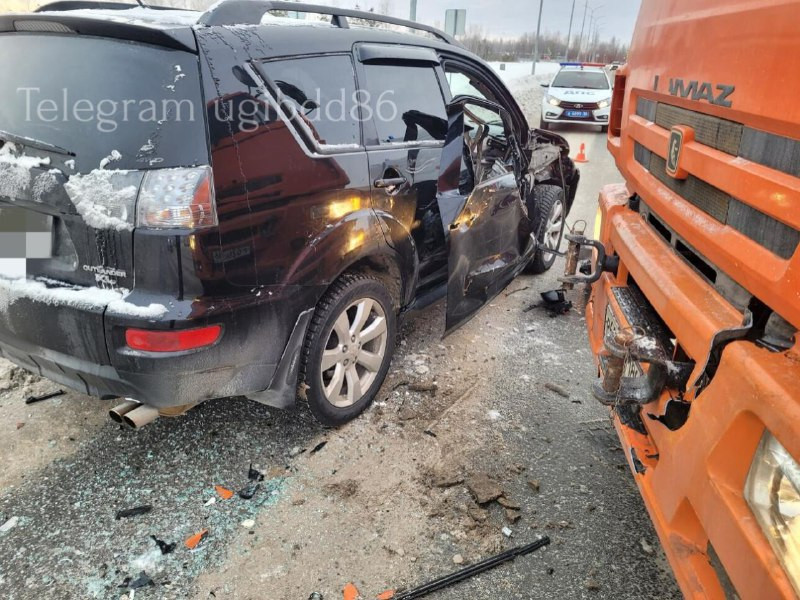 Ребенок и женщина отправились в больницу после жесткого ДТП с грузовиком в ХМАО