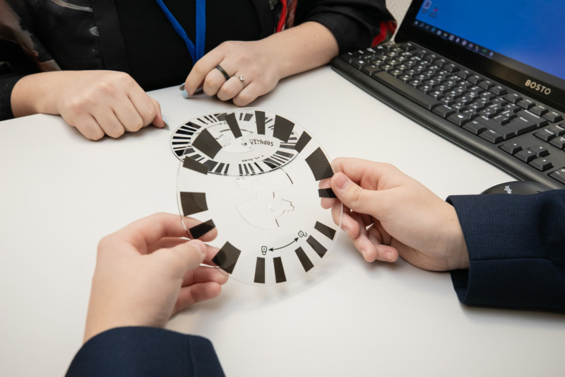 А вот еще совершенно загадочная для меня штука – командам раздают диски с какими-то черными полосками. Последовательность темных и прозрачных сегментов – это двоичный код. Тут вроде все понятно – нолики и единицы. Но она зашифрована кодом Хэмминга. Не спрашивайте, что это такое – я гуманитарий.