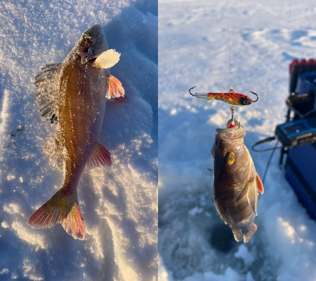 – Бурю первую лунку глубиной 1,2 метра, первый взмах балансира — и тут же поклевка. Смещаюсь в сторону и ловлю интересного окуня. Никогда такого не видел. А вы? – задался рыбак вопросом.