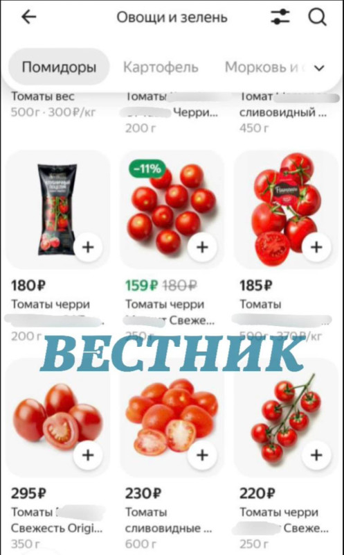 Интересно, что помидоры побили огуречный рекорд. В популярном приложении по доставке продуктов 350 грамм томатов стоят 295 рублей – это примерно 843 рубля за килограмм.