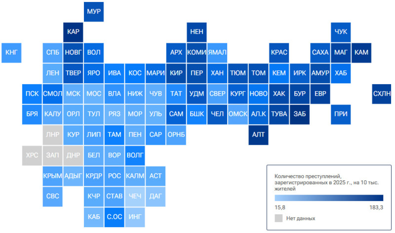– За 2025 год в округе произошло 136,4 преступлений на 10 тысяч населения, – сообщают данные рейтинга.