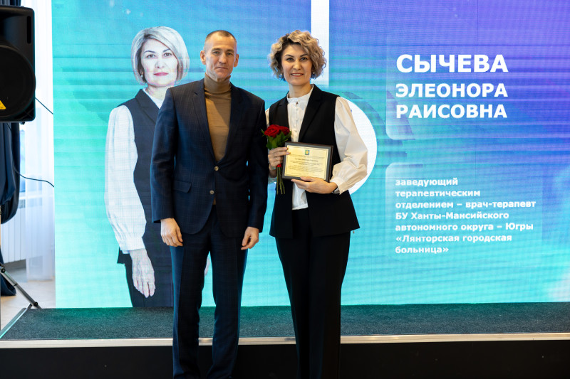 Доска почета в тот день пополнилась 15 именами. Среди них и Элеонора Сычева – заведующая терапевтическим отделением поликлиники в Лянторе. Приехала в район студенткой 25 лет назад из Тюменской области. Сегодня и лечит, и учит. Является наставником для двух-трех специалистов в год. Поздравления принимает также от главы района.