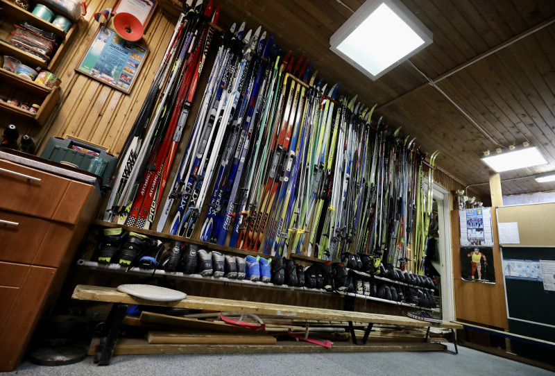 Лыжная база в Белом Яре – это скромная деревянная постройка среди вековых елей. Три небольшие комнаты, плотно заставленные инвентарем, деревянные скамейки. Условия для 30 спортсменов местной секции более чем скромные.
