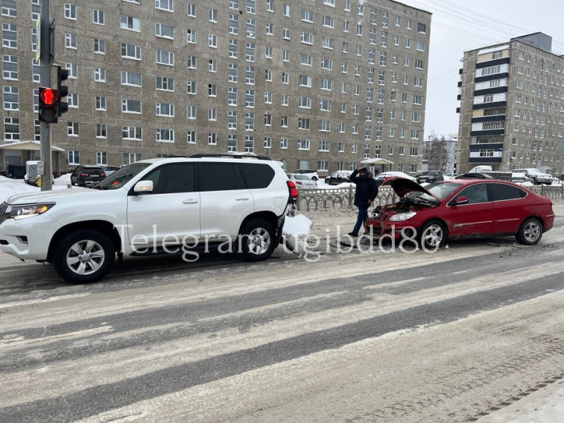 Водитель протаранил машину на светофоре в ХМАО, пострадали трое