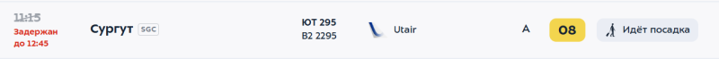 В Москве задержан рейс в Сургут (ХМАО). Об этом говорится на онлайн-табло аэрокомплекса.