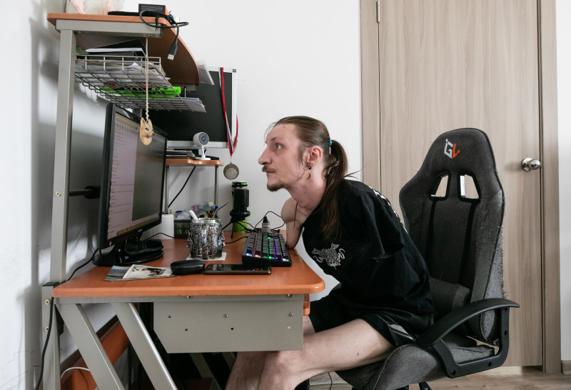 ФАКТ: Сергей – сисадмин в благотворительном фонде. Обычно он работает дистанционно, для этого в его квартире есть все необходимое. Порой он навещает своих коллег в офисе, где ему всегда рады. Там он занимается починкой техники.