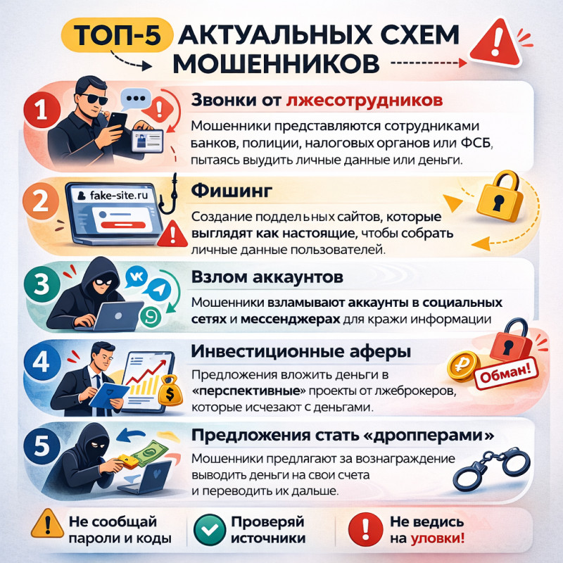 Полиция и чиновники не упускают возможности поговорить с жителями о популярных способах обмана, объясняют им, как не попасться на уловки мошенников, например, не скачивать непонятные приложения, включить на госуслугах двойную защиту и не верить в «безопасные счета». Несмотря на это, схемы аферистов продолжают работать – с начала 2026 года зарегистрировано уже 28 новых случаев развода людей.