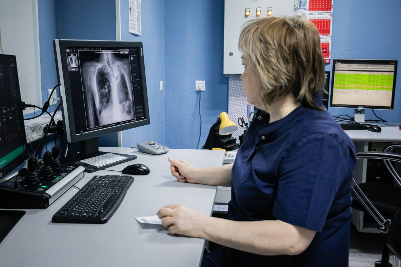 В день через поликлинику проходят до 80 пациентов – каждый получает лечение или направление на более глубокое обследование. Есть среди профессионалов в белых халатах и один особый сотрудник – рентген-аппарат, подключенный к искусственному интеллекту.