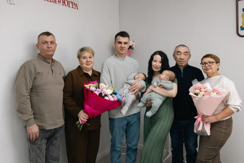 Для первой двойни, которая родилась в Сургутском районе в 2026 году, провели торжественную регистрацию. Об этом передает корреспондент «Вестника».