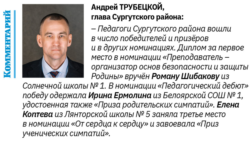 По традиции право принимать следующий региональный конкурс получает муниципалитет, чей представитель одержал победу. Сургутский район проведет состязание уже в третий раз. А наш педагог отправляется дальше – на всероссийский этап.