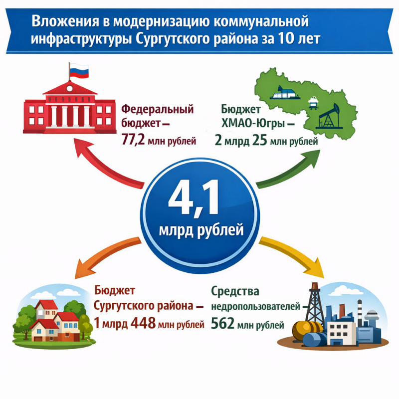 В целом за последние десять лет в модернизацию коммунальной инфраструктуры Сургутского района вложено более 4,1 млрд рублей. Но главный показатель – не потраченные деньги, а результат. Количество коммунальных аварий снизилось, люди живут в тепле, а горячую воду больше не добывают из батарей.