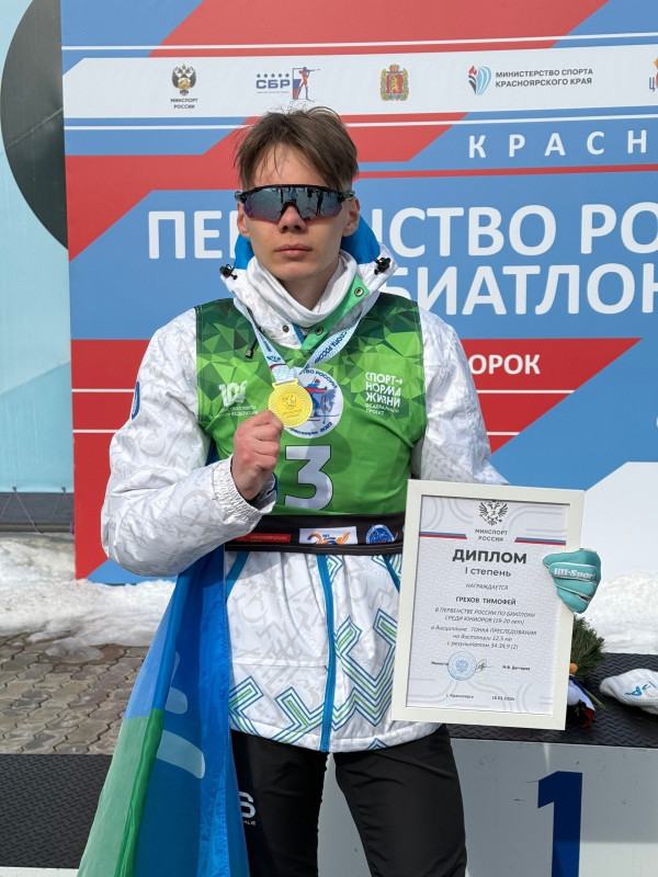 В активе спортсмена золото в масс-старте и гонке преследования, серебро в индивидуальной гонке и бронза в спринте. Всероссийские соревнования среди юниоров 19-20 лет собрали 150 участников из 24 регионов. Турнир завершился 21 марта, но результат Грехова уже стал одним из главных событий для округа.