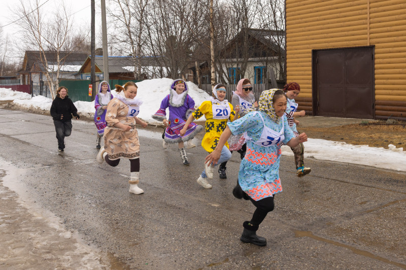 Пока одни боролись и соревновались в метании, другие бежали. Нарядные девушки в национальных костюмах состязались в стометровке. Казалось, развить скорость в платьях может быть непросто, но и тут видна сноровка местных дам. Они в таком обличье и реку переплывут – подтверждено Днем обласа, где в точно таких же костюмах они обуздают неспокойную Обь. Так что пробежать 100 метров для них плевое дело.