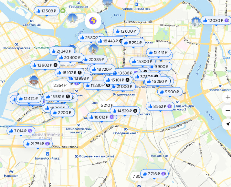 Санкт-Петербург: перелет туда-обратно стоит около 18 тысяч рублей. Цена одинакова на оба периода майских праздников.