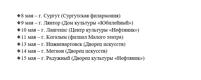 – 9 мая – Лянтор, Дом культуры «Юбилейный», – говорится в анонсе.