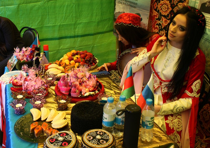 – Мы на фестивале представляем традиционный азербайджанский обычай Хна-Яхты. Так называемую «женскую свадьбу», во время которой невеста получает подарки от всех родственников. Важным элементом является красный цвет, который символизирует чистоту. Кроме того, мы не могли обойти вниманием нашего земляка, который внёс огромный вклад в развитие Югры – Фармана Салманова, – рассказывает помощник председателя азербайджанской НКААС «Бирлик» Алмас Худуева.