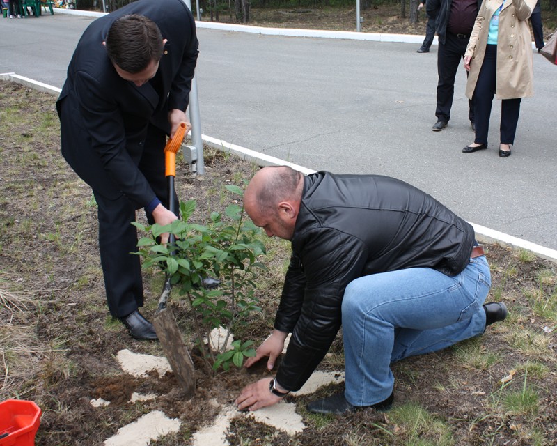 После речей наступило время дел – заместитель главы Сургутского района совместно с главой поселения Барсово Вячеславом Поздняковым посадили фестивальное дерево.